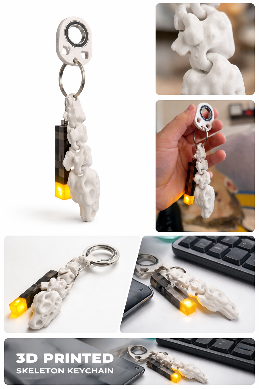 ⚪ biały brelok z ruchomym szkieletem